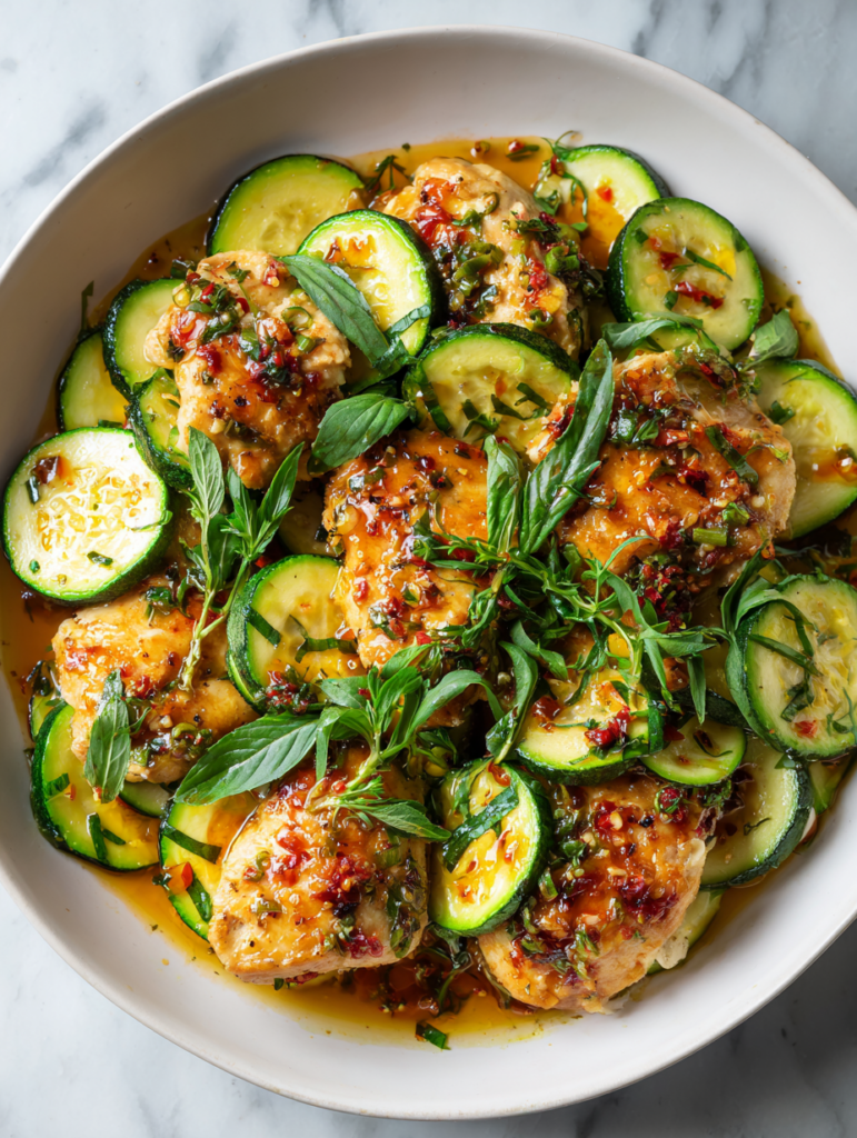 - Cook for another minute, allowing the flavors to meld and the zucchini to become shiny and fragrant. The chicken should remain juicy and tender.