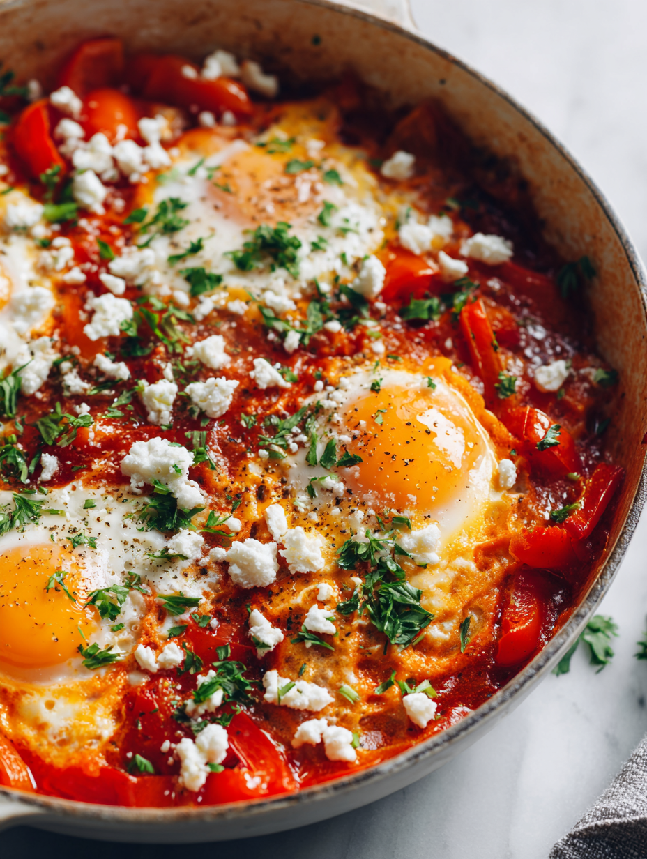 - Remove the skillet from heat once the eggs are just set. Garnish generously with chopped parsley or cilantro for a fresh, herbal finish.