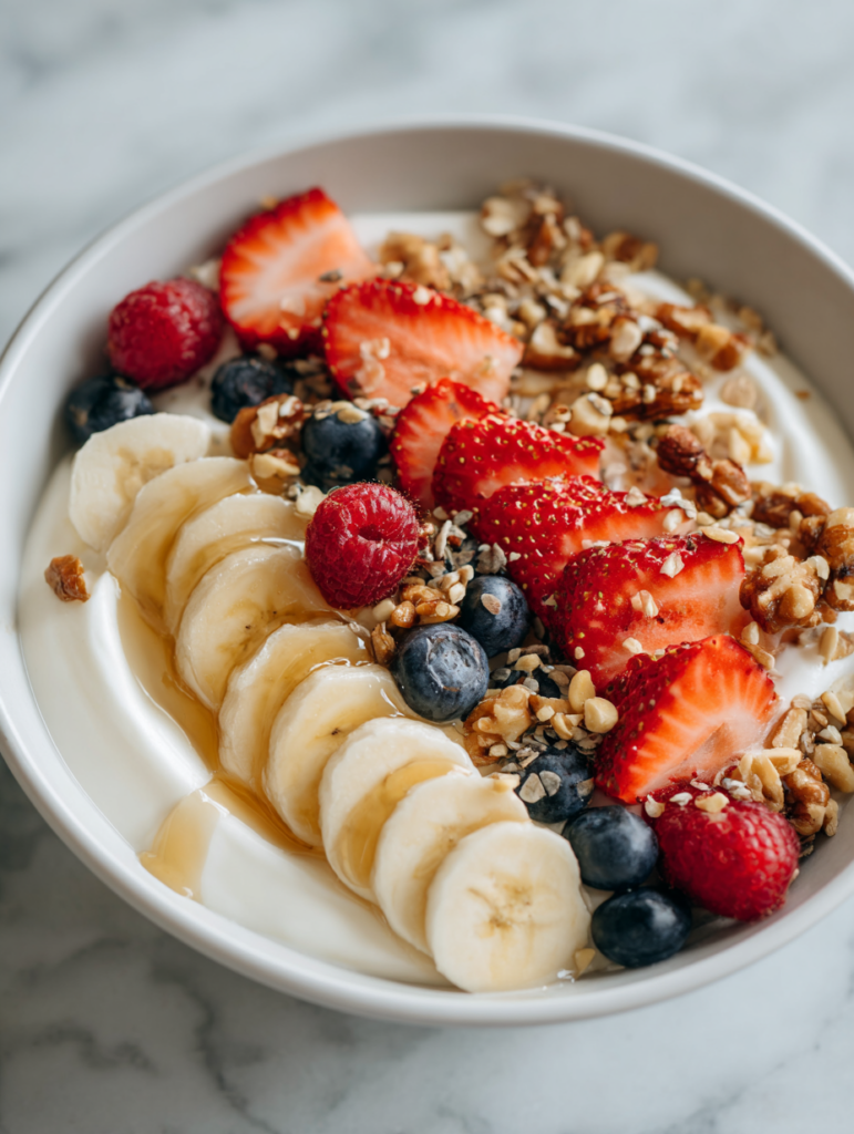There’s a certain comfort in mixing creamy yogurt with bright, crunchy toppings. It’s honest food, no fuss, no pretenses—just good ingredients coming together in a bowl. Sometimes I add a drizzle of honey or a sprinkle of cinnamon, and other times I keep it simple, letting the natural flavors shine.