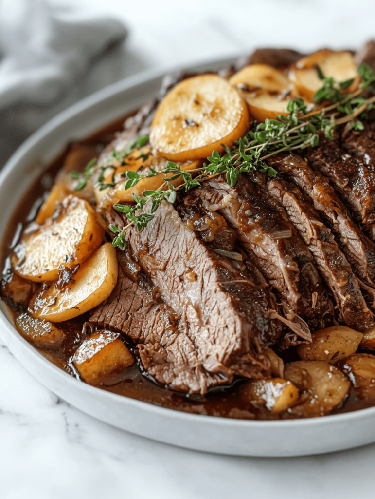 So I was thinking about how winter mornings smell—cold air, coffee, and that faint whiff of apple cider simmering away. Honestly, I wasn’t planning to use cider for a roast, but I guess I wanted something that felt a little surprising, a little different. It’s not just about the tender meat melting apart, but that sharp, slightly sweet aroma that hits you as soon as the lid lifts. No fancy ingredients needed—just good beef, a bottle of cider, and a few pantry staples. This dish kind of sneaks up on you, like, oh, this is just pot roast, and then suddenly you’re caught off guard by how much that apple tang makes the beef feel lighter, brighter. It’s exactly the kind of thing I want when I need a meal that makes me forget the cold outside for a while.