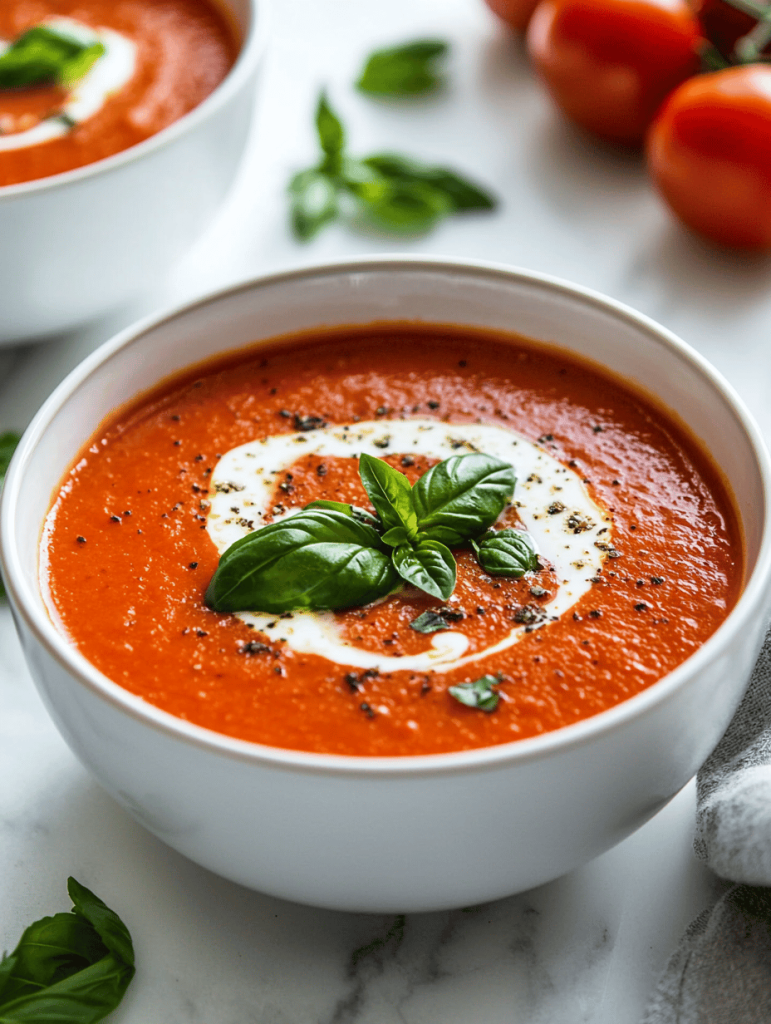 - Return the soup to the heat if necessary, season with salt and pepper to taste, and cook for another 2-3 minutes. Once done, serve hot with optional garnishes like fresh basil or a drizzle of olive oil.
