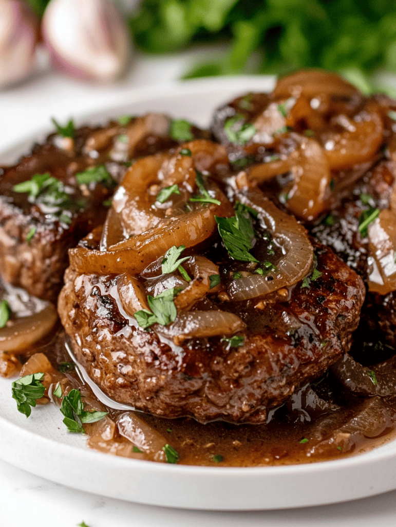Serving this Salisbury Steak with fluffy mashed potatoes or buttered egg noodles rounds out the meal perfectly. The gravy soaks into every nook and cranny, making each bite a comforting burst of flavor.
