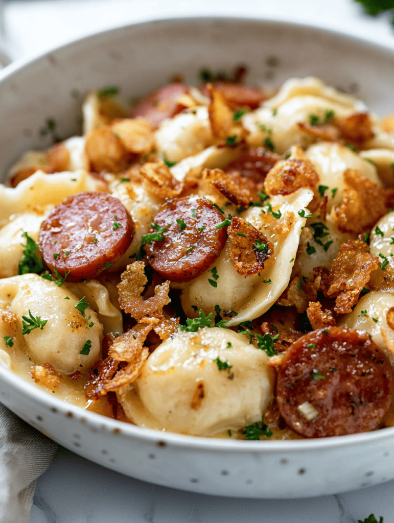 Polish-Inspired Pierogi and Kielbasa Casserole