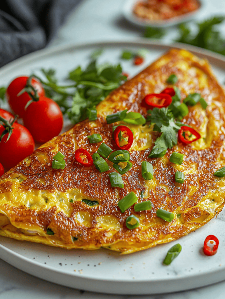 - Gently flip the omelet using a spatula, or fold it in half if preferred, and cook for another 30 seconds to a minute until golden and crispy on both sides. Remove from the pan and drain briefly on paper towels.