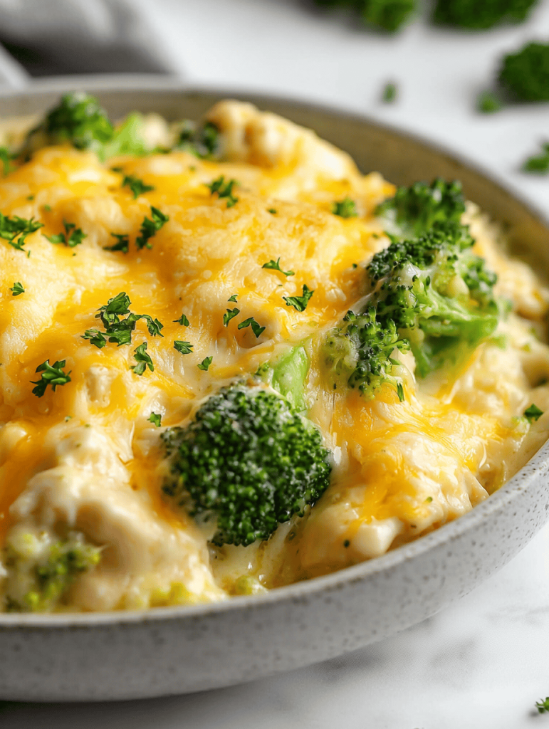 As the oven timer dings, the scent of roasted garlic and melting cheese fills my kitchen. This dish isn’t just about comfort; it’s about reclaiming those childhood moments when a simple casserole brought everyone to the table with open arms. The sound of broccoli crunching beneath a golden crust reminds me how humble ingredients can evoke the richest memories.