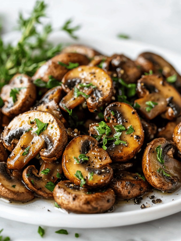 - Remove the skillet from heat and serve the mushrooms hot, garnished with additional black pepper if desired.